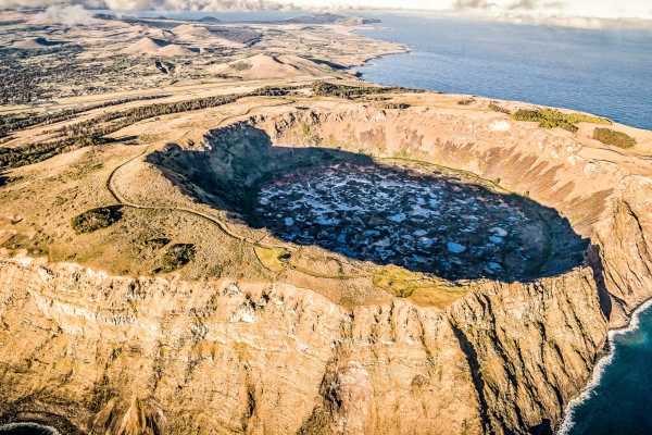 Caminata al Cráter por Vai a Tare - Camine por el borde exterior del Cráter del Volcán Rano Kau con hermosas vistas hacia la caldera y los islotes ubicados mar adentro (3 horas).
